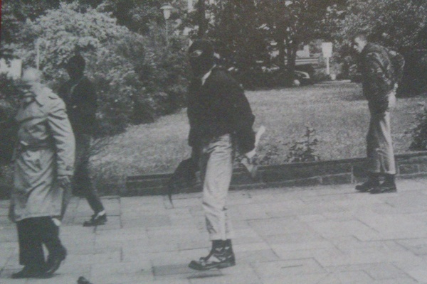AIB: Seht ihr im Augenblick eine Gefahr, die von den Neonazis in DDR ausgeht oder ist es ein Hirngespinst der SED? Stefan: Als erstes ist es wichtig festzustellen, was jetzt immer untergeht, das diese Tendenz schon viel länger besteht als die "Wende". Jens: Es ist falsch, wenn jetzt der Eindruck entsteht, das Neonazis was ganz neues in der DDR sind. Organisierte Rechtsextreme gibt es seit fünf Jahren, würde ich sagen. Stefan: Unterschwellig gabs das schon immer, aber extrem kam das hoch als die Skinheadbewegung neonazistisch unterwandert wurde, 1982 bzw. 1983 ungefähr. Da begann das auch mit