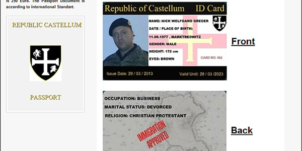 (4 Fotos)Über diplomatische Beziehungen zum Königreich Deutschland (siehe AIB Nr. 98), dessen Gründer Peter Fitzek er getroffen hat, ist nichts bekannt. Vielleicht hat sich Greger auch nur inspirieren lassen.