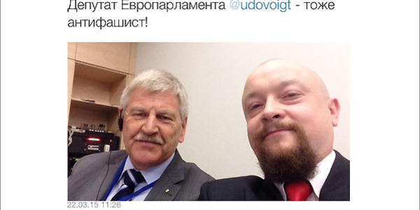 Udo Voigt (NPD) und Alexej Schurawljow, Vorsitzender von „Rodina“ (rechts).