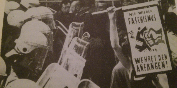 Klaus: Der Zusammenhang ist ja ziemlich naheliegend: Rassismus und Faschismus wird meist damit betrieben, irgendwelche Schuldigen für die sozialen Mißstände hier zu finden. Wenn man gegen die Faschisten was unternehmen will, muß man die wahren Schuldigen für die Mißstände benennen, muß man klar stellen, daß es eben nicht die Ausländer, die "Fremden" sind. Wir haben die Leute vom Werra-Block1 unterstützt, soweit es ging. Wir haben mit ihnen zusammen plakatiert und Aktionen gemacht. Und dann haben sie in unserer Zeitung, der "Neuköllner Antifaschistischen Zeitung" (NAZ), einen eigenen Artikel geschrieben.