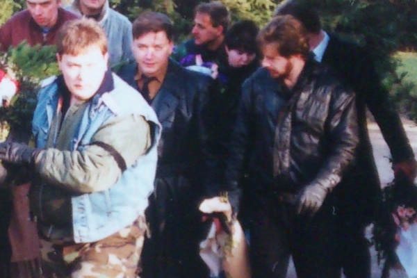 Neonazi-Angriff auf ein besetztes Haus in Prenzlauer Berg am 17. März 1990. Mit dabei der West-Berliner NF-Aktivist Christian F. (vorne links).