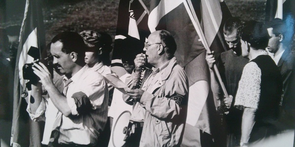 Der PNFE-Funktionär Claude Cornilleau als Redner beim "Rudolf-Heß-Gedenkmarsch" in Deutschland.