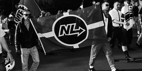 Anhänger der Hamburger Neonazi-Gruppe "Nationale Liste" (NL) beim "Rudolf Heß Gedenkmarsch" 1993 in Fulda.