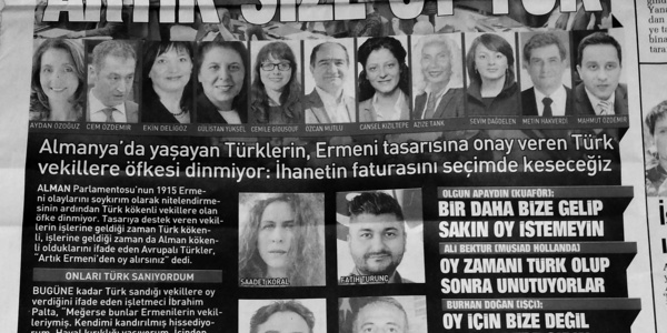 Die Titelseite der Sabah Avrupa prangert nach der Armenienresolution im Bundestag die Entscheidungsträger_innen an.