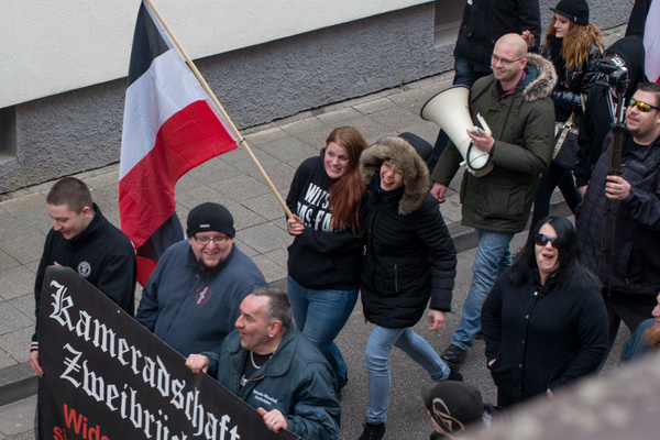 Indes gab es auch Pegida-Ableger, die sich einer zentralen Steuerung aus Dresden widersetzten. In einigen Fällen konnten die Konflikte (zeitweise) gelöst werden, in anderen nicht. Für bundesweiten Streit sorgte gleich in der Anfangszeit der Düsseldorfer Pegida-Ableger (DüGiDa), in dem Melanie Dittmer aktiv geworden war, eine vormalige Funktionärin aus dem Landesvorstand NRW der NPD-Jugend.5 Trotz ihrer damaligen Mitgliedschaft im Landesvorstand von „Pro NRW“ und trotz des mehrfach erneuerten Funktionärs-Verbots bei Pegida wurde sie im allseitigen Einvernehmen als Pressesprecherin für "Pegida NRW" eingesetzt. Rasch stieg sie in die Leitung von "Pegida NRW" an der Seite von Marco Carta Probach auf, bevor sie Anfang 2015 nach einer deutlichen Ansage der Dresdner „Orga“ wieder ausgeschlossen wurde. In einer Pressemitteilung war lediglich von „inneren Streitigkeiten“ und „inhaltlichen Differenzen“ die Rede. Das traf die Sache nicht ganz. Intern war offenbar negativ aufgefallen, das Dittmer auf einem Transparent nicht das Pegida-typische Mülleimer-Logo verwendet hat, sondern eine Abwandlung ohne Hakenkreuz. Wohl, um „bestimmten Leute“ nicht vor den Kopf zu stoßen, wie gemutmaßt wurde. In Bonn soll sie einem Mitdemonstranten eine Israelflagge abgenommen haben. Gegenüber MitorganisatorInnen habe sie zudem angedeutet, personelle und technische Unterstützung abzuziehen, sollte ihren Vorgaben nicht gefolgt werden. Das war zu viel, Frank Ingo Friedemann stellte vor diesem Hintergrund in der Deutschland-Orga klar: „Die Richtung sollte aus unserer Sicht sein, dass alle gewillten Gida’s unsere Positionen unterstützen und sie auch als ihre ansehen […] Wenn eine GIDA meint, ihren eigenen Weg gehen zu müssen, dann soll sie die[s) tun, aber dann nicht mit Unterstützung und Genehmigung von PEGIDA Dresden".