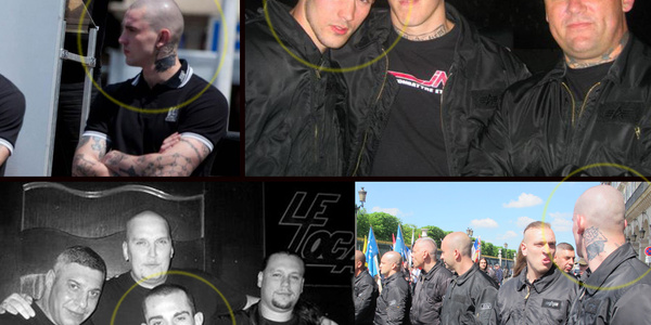 Der verhaftete Neonazi Jérémy Mourain (im Kreis) war Teil der organisierten Neonazi-Szene. Im Bild oben rechts mit Yohan Mutte (mitte). Fotos: La Horde