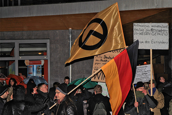 Als offizieller Ableger der „Identitären Bewegung“ existiert die Bremer IB seit September 2016. Bemühungen eine solche Gruppe in Bremen zu gründen, reichen in die Jahre 2012/2013 zurück. In diesem Zeitraum trafen sich Personen zu einem „Identitären Stammtisch“. Dieser instrumentalisierte den tragischen Tod eines Jugendlichen am Bahnhofsvorplatz im niedersächsischen Kirchweyhe für seine rassistische Hetze.6 Danach nahmen die Aktivitäten ab. Im Zuge der sogenannten „Flüchtlingskrise“ vergrößerte sich der Personenkreis um den „Identitären Stammtisch“. Durch die mediale Präsenz, an erster Stelle bei Facebook, konnte offenbar eine Vielzahl an Interessierten dazu gewonnen werden.
