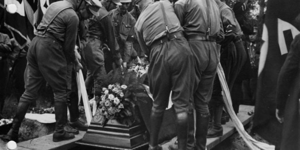 Die inszenierte Beisetzung eines in Berlin ermordeten SA-Mannes in Eberswalde.