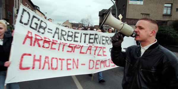 Im März 1998 demonstrierten Neonazis im thüringischen Saalfeld gegen eine antifaschistische Demonstration.