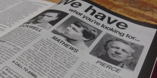 Bekannt wurde William Pierce für einen Roman, den er Ende der 1970er Jahre verfasst hatte: „The Turner Diaries – Die Tagebücher des Earl Turner”. Im Zentrum der Erzählung steht die Figur Earl Turner, dessen Tagebuch 100 Jahre nach den darin beschriebenen Ereignissen gefunden wird. Der fiktive Turner erlebt, wie weiße Christen 1991 einen Bürgerkrieg in den USA anzetteln – und mit großer Brutalität aus dem Untergrund heraus führen. Das Buch wurde Vorbild für weiße Rassisten auf der ganzen Welt. Denn Pierce hatte die Realität einfach umgedreht – nicht die Nachfahren der Sklaven waren die Opfer, sondern „die Weißen“. Er sprach damit Leser an, die längst Rassisten waren und nur noch überredet werden mussten, ihren Hass in Aktion umzusetzen.5