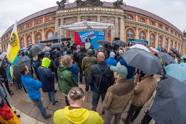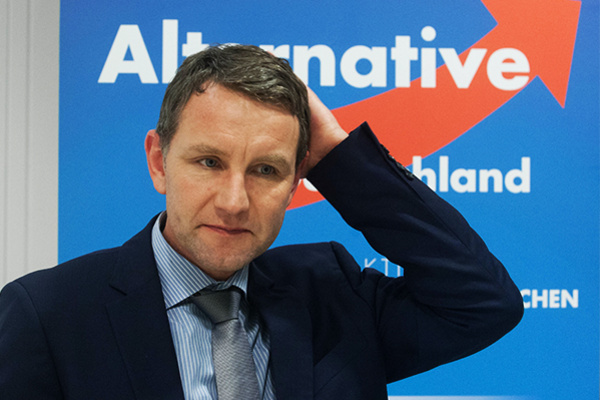 Ein Comic aus Thüringen, zwei Personen unterhalten sich: „Aber das darf man heute ja nicht mehr laut sagen...“, sagt die eine. Plötzlich steht Björn Höcke vor ihnen und gibt ihnen recht: Die Meinung in Deutschland sei von Gleichschaltung in den Medien und Blockparteien diktiert. Die DDR wird als Referenz herangezogen: Deutschland sei auf „dem besten Weg in eine Gesinnungs-Diktatur.“ Früher die Stasi, heute „machen die Antifa-Banden Jagd auf politische Abweichler“, so der besorgte Bürger. Höcke hat die Lösung, denn die Wahl der AfD käme einer friedlichen Revolution gleich.