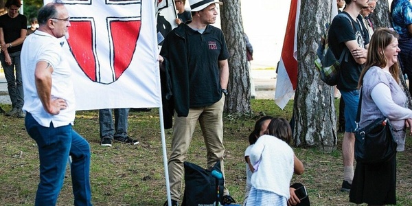 Der (frühere) BKA-Beamte Stefan Andreas Wischniowski (mit Hut) am 12. September 2020 bei einem Aufmarsch der „Identitären“ in Wien.