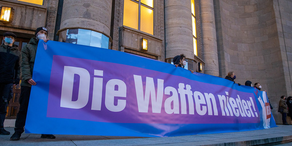 Der russische Einmarsch in die Ukraine hat die Friedensbewegung in Deutschland überrascht. Noch einige Tagen vor der Invasion hieß es in dem Aufruf „Friedenspolitik statt Kriegshysterie“: „Trotz der Militärmanöver in der Nähe zur Ukraine hat Russland kein Interesse an einem Krieg.“ Mehr als 10.000 Menschen unterzeichneten das Papier. In den ersten Tagen des rasch eskalierten Krieges mussten sich viele Aktive erst mal sammeln – und erst recht, nachdem SPD-Bundeskanzler Olaf Scholz eine massive Aufrüstung der Bundeswehr sowie die Lieferung von Waffen an die Ukraine angekündigt hatte. Auf den bald folgenden, oftmals unter Mitwirkung der ukrainischen Community organisierten Großdemonstrationen waren dann zwar Friedensbewegte unterwegs – politisch schienen sie jedoch unterzugehen. Auch wenn von einigen Medien die Proteste als „neue Friedensbewegung“ gelabelt wurden, dürften die meisten Teilnehmer*innen eher aus Betroffenheit und Solidarität mit der Ukraine gekommen sein.