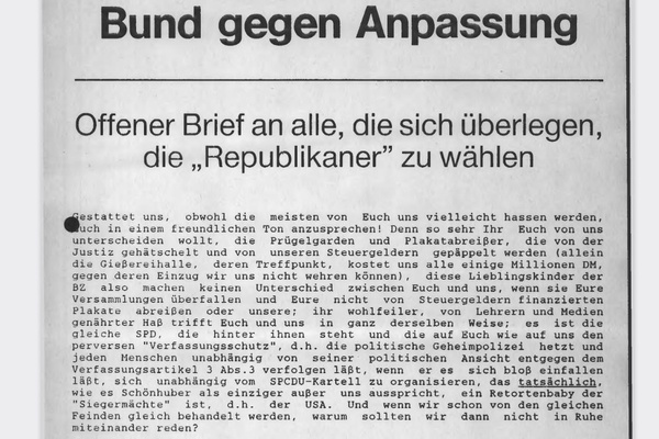 Eine Gesellschaft, die zur Verteidigung ihrer Ordnung und ihrer Interessen einer derartigen Justiz bedarf, kann sich mit den Ursachen des Nationalsozialismus nicht auseinandergesetzt und mit ihrer Vergangenheit nicht überzeugend gebrochen haben. Aber das wird uns 1992 ja nicht nur in deutschen Gerichtssälen vor Augen geführt, sondern in Bundestagsdebatten, in Zeitungen, in den Talk-Shows des Fernsehens und auf der Straße. Auch in aktuellen Prozessen werden von der Justiz die organisatorischen Zusammenhänge und politischen Motivationen rechter Gewalttäter verharmlost oder geleugnet, während man die Gegenwehr ausländischer Jugendlicher und antifaschistischer Initiativen zur großen Gefahr aufbauscht.
