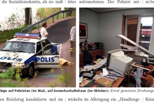 mit Interesse las ich vor einiger Zeit Euren Bericht »Das Nachkriegsnetz der SS«. Auch wenn mir das Meiste noch aus meiner BRD-Zeit in den 1950iger Jahren geläufig war, z.B. die Rehabilitierung über die 'Jungtürken' der FDP1 mit von Manteuffel2 und dem hohen HJ-Führer Zogelmann3 – so ist leider immer noch Anlaß, die jüngere Generation über die Machenschaften dieser Dunkelmänner und ihres Nachwuchses aufzuklären. Gegen Ende des Berichtes erwähnt ihr auch einige Figuren aus der schwedischen SS-Szene. Diese sind gewiß nicht zahlreich - 1939-45 circa 300 SS-Leute - aber als Hintermänner für immer neue faschistische und fremdenfeindliche Terrororganisationen sowie wegen ihrer Beziehungen zur Justiz und Höheren Beamtenschaft sind diese Herren durchaus gefährlich.