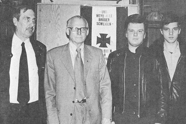 Der westdeutsche Neonazi Bernd Stehmann (rechts). Gegen ihn demonstrierten Antifas im Vorfeld des "Rudolf Heß"-Marsches.