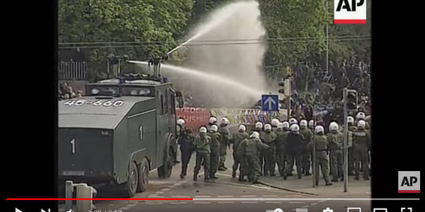 Wasserwerfer Einsatz gegen Antifas in Leipzig.