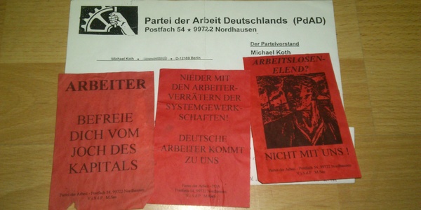 Propaganda Material der rot-braunen "Partei der Arbeit Deuschlands" (PdAD)