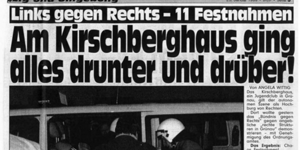 AntifaschistInnen, die auf diese Aktivitäten rund um das Kirschberghaus durch eine Klebe- und Flugblattaktion am 18. Oktober 1998 aufmerksam machen wollten, wurden aus dem Kirschberghaus von etwa 15 Neonazis mit Steinen und Leuchtspurgeschosse angegriffen. Am 1. November 1998, bei einer weiteren Protestaktion gegen das Kirschberghaus von rund 120 AntifaschistInnen, zeigte sich deutlich, wie sehr sich die drei dort angestellten SozialarbeiterInnen mit ihrem Klientel identifizieren: Die in dem Haus verschanzten Neonazis provozierten mit Hitlergrüßen, und die anwesenden Sozialarbeiter rieten den AntifaschistInnen zu: »Verschwindet hier, ihr Provokateure« und »Ihr habt hier nichts verloren, das ist nicht euer Terrain«. Wenige Tage später wurden Schüler am Grünauer Max-Klinger-Gymnasium von bekannten Neonazis bedroht, und es wurden Sprühereien wie »NSDAP Grünau« hinterlassen.