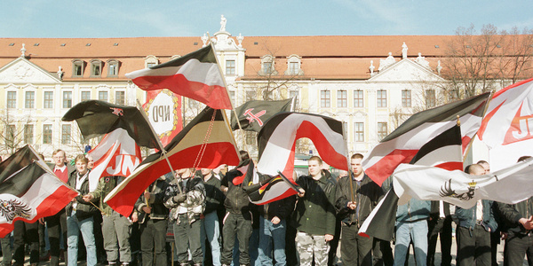 NPD-Kundgebung im Februar 1999 in Magdeburg.