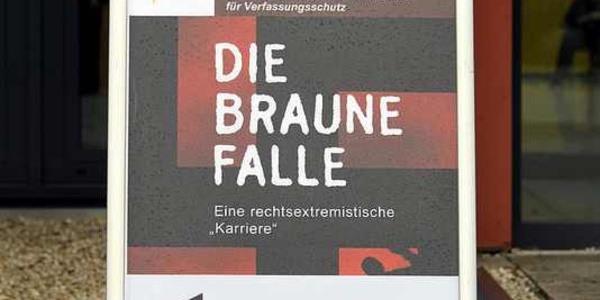 Werbung für eine Verfassungsschutz-Ausstellung in Köln.