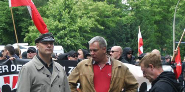 Christian Worch (2.v.r.) und Thomas Wulff (3.v.r.) gelten als Mitbegründer des Netzwerkes der "Freien Kameradschaften".