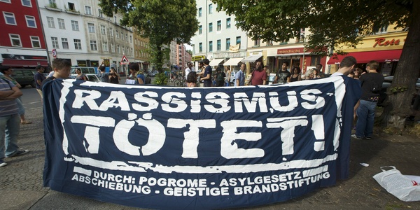 Vor acht Jahren, am 8. November 1992, gab es schon einmal eine staatlich inszenierte Großdemonstration in Berlin. Zuvor hatte die Polizei die pogromartigen Angriffe auf Flüchtlinge u. a. in Hoyerswerda und Rostock geduldet. Hunderttausende gingen zu Lichterketten, und einige Neonazigruppierungen wurden verboten. Schon damals ging es den Verantwortlichen in der Regierung darum, gegenüber dem Ausland das anständige Deutschland zu repräsentieren. Nachdem das erledigt war, schafften die damalige Bundesregierung und die SPD Mitte 1993 das Grundrecht auf Asyl faktisch ab. Dabei nutzte die Politik die rassistischen Angriffe als Begründung. Durch das Flughafenverfahren, die Abschiebehaft, das Asylbewerberleistungsgesetz, Arbeitsverbote und -einschränkungen oder zahlreiche Kampagnen gegen Flüchtlinge, sogenannte Ausländerkriminalität oder die islamische Religion in den folgenden Jahren wurde die Lage der Betroffenen kontinuierlich verschärft.