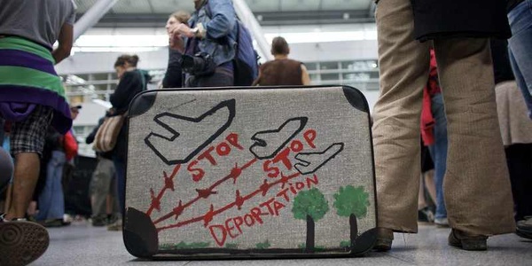 Jährlich werden 10.000 Flüchtlinge vom Frankfurter Flughafen aus wieder abgeschoben. Das sind pro Tag 30 – 40 Menschen, die mit Unterstützung des BGS, teils unter Gewaltanwendung, geknebelt und gefesselt in Flugzeuge gesetzt und oft in Länder gebracht werden, in denen sie in vielen Fällen von Folter oder Hinrichtung bedroht sind. Das oft rücksichtslose und brachiale Verhalten der Beamten bei der Abschiebung hat 1994 dem Nigerianer Kola Bankole und 1999 Aamir Ageeb aus dem Sudan das Leben gekostet. Beide starben in Lufthansa Flugzeugen an den Folgen der Misshandlungen durch Polizisten. Die deutsche Kranich-Airline unterstützt die deutsche Bürokratie bei der Hälfte aller Abschiebungen, indem sie kommentarlos und ohne Berücksichtigung der Bedingungen die abgelehnten Flüchtlinge transportiert.