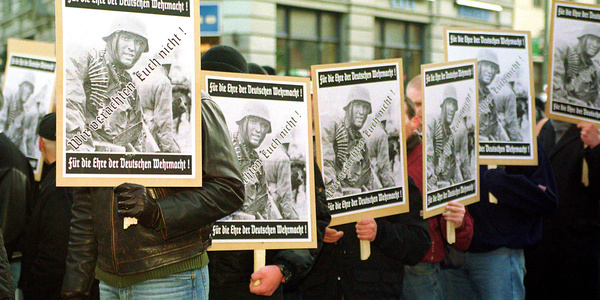 Rund 3.000 Neonazis folgten am ersten Adventswochenende 2001 dem Aufruf der NPD, gegen die erneuerte Ausstellung »Verbrechen der Wehrmacht. Dimensionen des Vernichtungskrieges. 1941 –1944« des Hamburger Instituts für Sozialforschung zu demonstrieren. AntifaschistInnen war es aufgrund des massiven Polizeiaufgebotes nicht möglich, den Aufmarsch zu behindern. In einer Presseerklärung mit dem bezeichnendem Titel »NPD-Demonstration - Zusammentreffen mit Gegendemonstranten verhindert« resümierte die Berliner Polizei: »Die Polizei hatte rund 4.000 Beamte im Einsatz, um einen reibungslosen Ablauf der Veranstaltung im Bezirk Mitte und auf den Zufahrtsstrecken zu gewährleisten.« Wieder einmal hatten die Berliner Innenverwaltung und die Polizei nur ein Ziel: »Ruhe und Ordnung«.