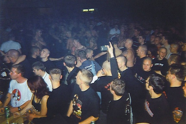 Der Neonazi-Händler Ingo Grönwald ist Inhaber der Marke WALHALL GERMANY. Hier getragen auf einem NPD Fest in Rostock.