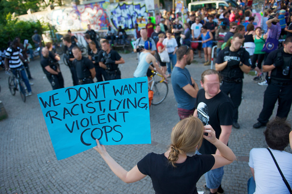 - 1Ausführlich widmet sich die Broschüre »Bullen die zum Brechen reizen«, herausgegeben vom Bremer Antirassismusbüro (ARAB), den dortigen Verhältnissen.
