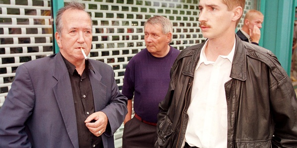 Wer steuert eigentlich wen ? Der frühere NPD-Landesvorsitzende von Mecklenburg-Vorpommern, Ronny Grubert (rechts), soll für das Landesamt für Verfassungsschutz in Mecklenburg-Vorpommern gearbeitet haben. Aussagen von Grubert waren im NPD-Verbotsantrag enthalten. Hier: Grubert bei einer Wahlkampfveranstaltung in Rostock-Schmarl, zur Landtagswahl im September 1998 mit Rechtsanwalt Peter Stöckicht (links).