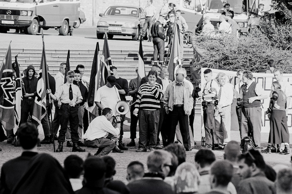 Werfen wir einzelne Schlaglichter auf einige Dörfer und Städte der Region: In Ansbach ist Adolf Hitler auch im Jahr 2002 noch Ehrenbürger der Stadt. Die Ereignisse in Adelsdorf sollten ebenfalls nicht vergessen werden. Dort hat die »ganz normale« Dorfbevölkerung Teilnehmer einer Gedenkdemonstration der jüdischen Gemeinde anlässlich der Reichspogromnacht angespuckt und beleidigt. Oder betrachten wir Herzogenaurach, wo die Arbeiterwohlfahrt (AWO) mit dem NPD-Kreisverbandsvorsitzenden von Erlangen-Höchstadt, Ludwig Braun, und anderen Neonazi-Aktivisten diskutiert.