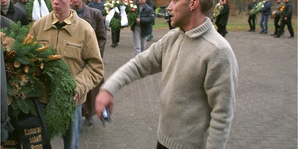 Wäre es nach den Nazis gegangen, wären sie vom Bahnhof zum Friedhof marschiert und hätten dort mit Kränzen ihren Vorbildern aus der SS gehuldigt, während auf dem Friedhofsvorplatz eine volksfestähnliche Veranstaltung mit Musik und Ausschank stattgefunden hätte. Die Prognose des Brandenburger Verfassungsschutzes, »'Heldengedenkfeiern’ in Halbe dürften mit dem Urteil des Bundesverfassungsgerichts ein für alle Mal der Vergangenheit angehören«, ist jedoch bei weitem zu voreilig. Ohne eine so erfolgreiche und strömungsübergreifende Antifa-Mobilisierung im bundesweiten Rahmen, wie sie im November 2002 mit starker Unterstützung antifaschistischer Gruppen aus Brandenburg stattfand, wird sich ein Nazigedenken in diesem Jahr nicht ohne weiteres verhindern lassen. Ein neuer Aufmarsch unter dem Motto »Ruhm und Ehre dem deutschen Frontsoldaten!« ist vorsorglich für den 15. und 16. November 2003 – also nicht am Feiertag – durch den selbst ernannten Freundeskreis »Heldengedenken in Halbe« angemeldet worden.