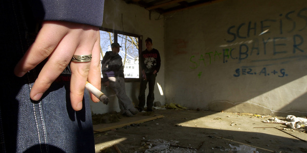 Bis zum Dezember 2001 traf sich die Clique von Mathias und André in einer leerstehenden Garage direkt neben der Anlegestelle für Ausflugsdampfer. Heute liegen die Bretter der von den Jugendlichen selbstgebauten Theke verstreut über den nackten Betonfußboden, in den Fensterrahmen hängen die letzten Glassplitter. An die Wand haben Unbekannte einen Ku-Klux-Mann geschmiert. »Eigentlich war es ein ganz normaler Abend, wir saßen zusammen, als die Tür aufgetreten wurde,« erinnert sich André. Die Naziskins zerschlugen Mobiliar und Flaschen. Einige aus der Clique wurden an die Wand geschleudert. Gewehrt hat sich niemand der Angegriffenen. Mathias und André meinen, dass sie Glück gehabt haben an diesem Abend. Einen Treffpunkt wie die Garage haben sie jetzt nicht mehr. Während die anderen erzählen, dass sie trotz Drohungen bei der Polizei ausgesagt haben, streicht sich Ringo gedankenverloren über die vernarbte Nase. Er kennt das Gefühl, ohmächtig einer Gruppe von Rechten ausgeliefert zu sein. Zusammen mit einem Freund wurde er in einem Wohngebiet überfallen. Die beiden Punks blieben schwer verletzt liegen – mit Fäusten und Ketten geschlagen, mit Füßen getreten. Eingegriffen hat niemand. Ein anderes mal wurde Ringo von Naziskins mit dem Auto durch Stadt gejagt. Oft wird er angepöbelt – auch von ganz normalen Ueckermündern.