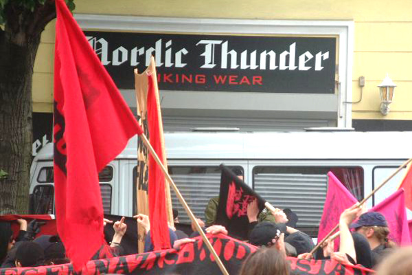 Stehen bei den meisten dieser Verbindungen eindeutig finanzielle Aspekte im Vordergrund, so besteht auch die Möglichkeit, dass sich diese Trennung zwischen Geschäft und Ideologie aufzulösen beginnt. So nahmen im Oktober letzten Jahres bei einem Neonaziaufmarsch in Potsdam auch Mitglieder des Rockerclubs »Gremium MC« teil. Sind diese Vermischungseffekte bisher eher am Rande zu beobachten, so geht die eigentliche Gefahr dieser Mischszenen momentan noch von einem anderen Punkt aus: Durch die erweiterten Absatzmärkte wird auch die Einstiegsschwelle in die Neonaziszene geringer.