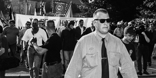 Der FAP-Funktionär Siegfried Borchardt (vorne) bei einer Neonazi-Demonstration.