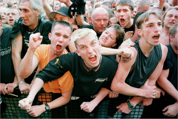 Martin BüsserKurz nach dem Mauerfall begann Deutschland, seine hässliche Fratze wieder offen zu zeigen. Anfang der 1990er verging keine Woche ohne rechtsradikale Brandanschläge auf Wohnheime und geschändete jüdische Friedhöfe. In diesem Zusammenhang rückte erstmals in die öffentliche Wahrnehmung, dass Rockmusik zunehmend zum Sprachrohr für diskriminierende, nationalistische und rassistische Inhalte geworden ist. Parolen wie »Nieder mit dem Misch-Masch-Blut, denn das tut dem Vaterland nicht gut« (Störkraft) haben den immer schon naiven Glaube erschüttert, dass Rock per se Rebellion gegen jegliche Autoritäten und damit tendenziell emanzipatorisch links sei. Die Medien reagierten auf solche Extremformen des sogenannten Rechtsrock mit Empörung, Bürger und Politiker gingen gemeinsam gegen rechte Gewalt auf die Straße, bildeten Lichterketten. Während Extremismus und rechte Gewalt nahezu einhellig abgelehnt und sehr schnell auf das stereotype Bild des pöbelnden Skinheads projiziert wurden, mehrten sich zugleich die Stimmen aus der gesellschaftlichen Mitte, die einen neuen, »normalen« Umgang mit Patriotismus und Nation forderten. Popkultur spiegelte diesbezüglich das alle kulturellen und gesellschaftlichen Bereiche durchdringende Zusammenspiel aus Fremdenangst (»Das Boot ist voll«) und Neubewertung des Nationalen wider.