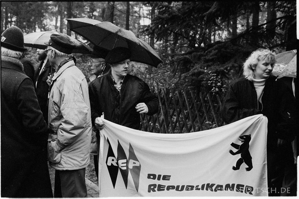 - 1Die Veranstaltung mit Franz Schönhuber war von der Berliner REP-Führung um Bernhard Andres und Alexandra Kliche organisiert worden.