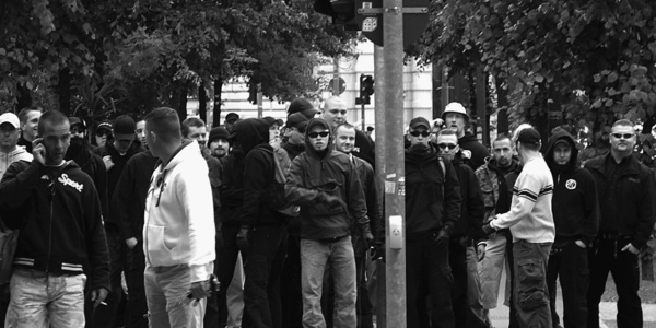 Berliner und Brandenburger Neonazis versammelten sich zur Prozessunterstützung vor dem Potsdamer Amtsgericht.