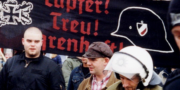 Lars Georgi (links) als Teilnehmer einer Neonazidemonstration 1998 in Bonn.