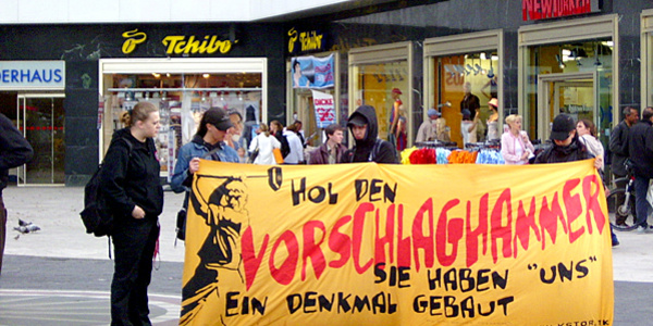 Da die KS Tor und ihr Berliner Umfeld ein wichtiger Impulsgeber für die Strömung der »Autonomen Nationalisten« in Deutschland ist, kann an ihrem Beispiel deutlich gemacht werden, wo die Grenze zwischen Habitus und Realität verläuft. Ein geschlossenes Konzept oder eine niedergeschriebene Strategie gab es weder in der KS Tor noch in der gesamten Berliner Kameradschafts-Szene. Eher prägen große Differenzen und dauernde Streitereien den Alltag in der Berliner Szene. Inhaltlich passierte kaum etwas, da nur wenige Einzelpersonen in der Lage waren, Texte zu verfassen. Entschlüsse zu Aktionen folgten selten einem Diskussionsprozess zwischen Gruppen, sondern waren in der Regel spontane Ideen Einzelner. Aus diesem Blickwinkel ist auch die Übernahme linksautonomer Aktionsformen und Außendarstellung durch KS Tor-Aktivisten zu betrachten. Anfangs als »Black Block«-Kult in kleinem Rahmen von Einzelnen praktiziert, wurde der Style durch immer mehr Aktivisten der KS Tor nach und nach massiv vorangetrieben, bis er irgendwann zu einem Selbstläufer wurde. Ein bestimmtes strategisches Moment oder eine längerfristige Strategie wurden dabei jedoch nicht verfolgt.