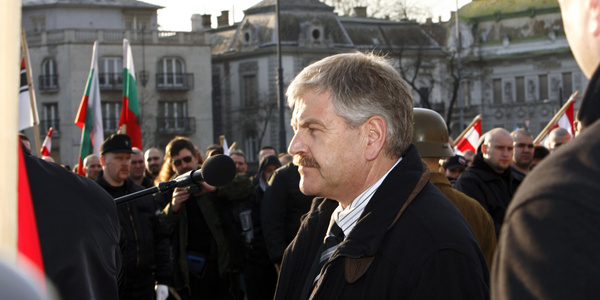 Der NPD-Parteichef Udo Voigt bei einem Neonazi-Aufmarsch in Ungarn.