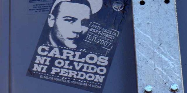 Lars LaumeyerAm 11. November 2007 sollte ein Aufmarsch der rechten Democracia Nacional in Madrid stattfinden. Auf dem Weg zu einer Gegendemonstration wurde der 16jährige Antifaschist Carlos Javier Palomino von einem Neonazi durch Messerstiche ermordet.