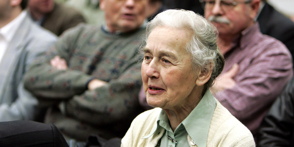 Die frühere Leiterin des Collegium Humanum in Vlotho, Ursula Haverbeck-Wetzel, bei einem Gerichtsprozess gegen den Holocaust-Leugner Ernst Zündel.