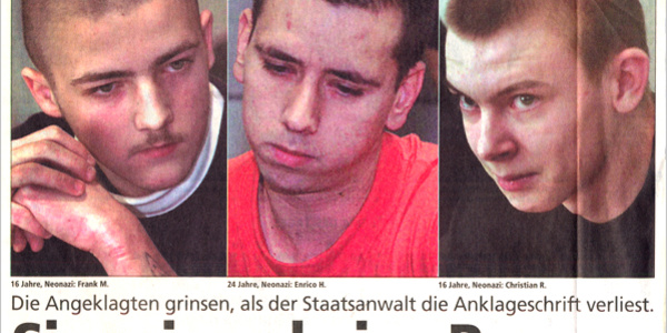 v.l.nr.: Frank M., Enrico Hilprecht und Christian R. zeigten vor Gericht kein Zeichen von Reue für den rassistischen Mord an dem 39-jährigen gebürtigen Mosambikaner Alberto Adriano.
