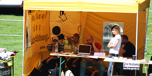 Mareike »Rieke« Bielefeld am Infotisch von »free-gender« am 13. Juni 2009 beim »Tag der nationalen Jugend« in Arnstadt.