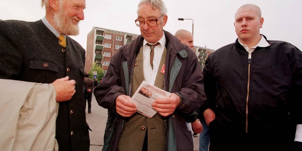 Der frühere Rechtsterrorist Manfred Roeder (mitte) war 1998 Kandidat der NPD in Mecklenburg Vorpommern.