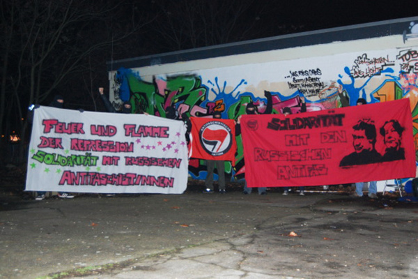 Solidaritätskundgebung für die Sozialen Bewegungen in Russland im Februar 2009 vor der Russischen Botschaft in Berlin