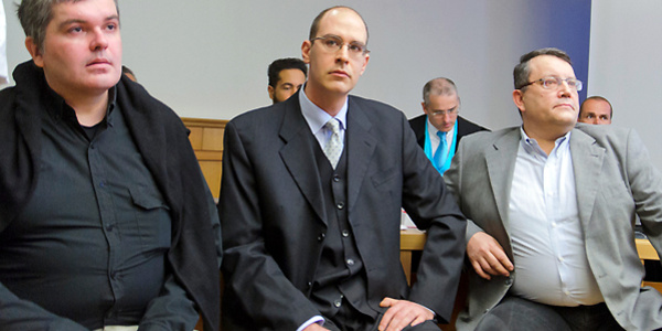Die Angeklagten v.l.n.r.: Felix Budin, Wilhelm Christian Anderle, Gottfried Küssel